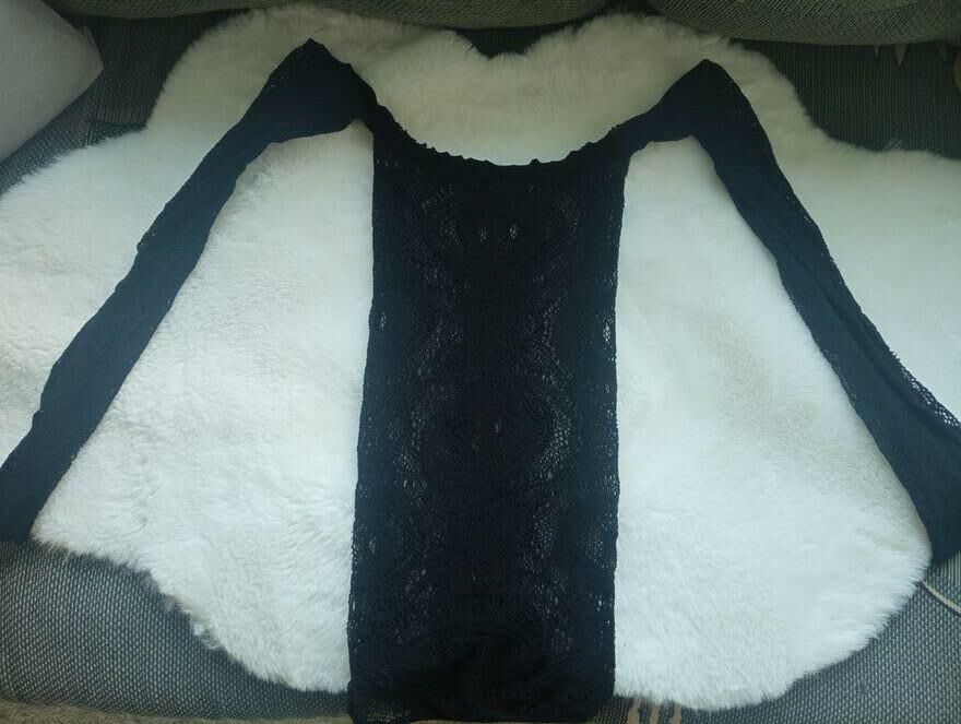 Kusząca bluzka hiszpanka z ażurowymi prześwitami. Stan bardzo dobry. Rozmiar uniwersalny. Wysyłka paczką pocztową 16 zł.Katarzyna