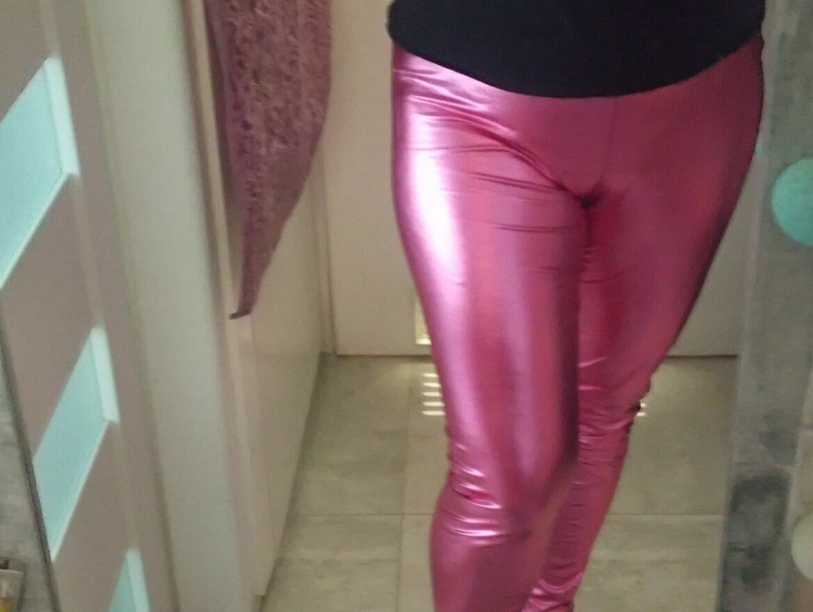 Efektowne, mocno błyszczące różowe legginsy podkreślające kształty i wyróżniające z tłumu. Nowe. Rozmiar XL. Wysyłka paczką pocztową 16 zł.Katarzyna