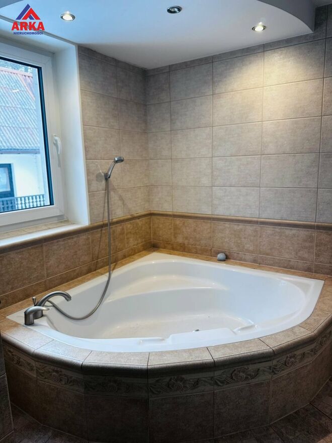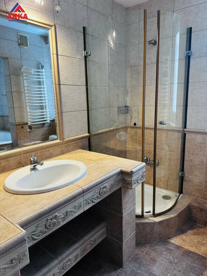 - łazienka z wanną oraz prysznicem