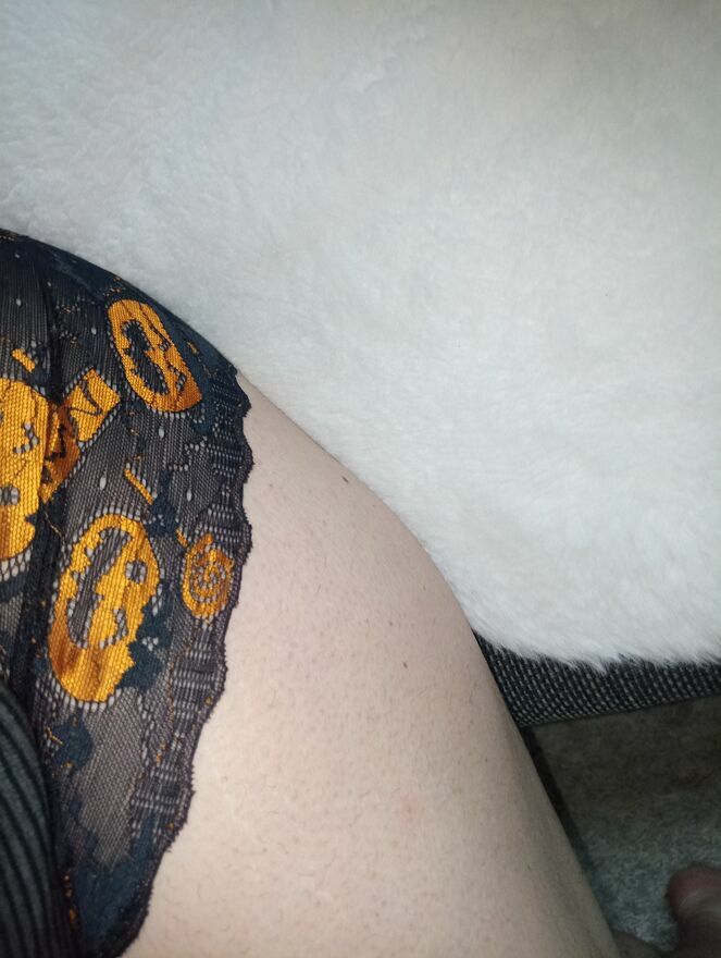 Urocze koronkowe figi otwarte z wysokim stanem z nadrukiem dyni. Nowe. Rozmiar XL. Wysyłka listem poleconym 10 zł.Katarzyna