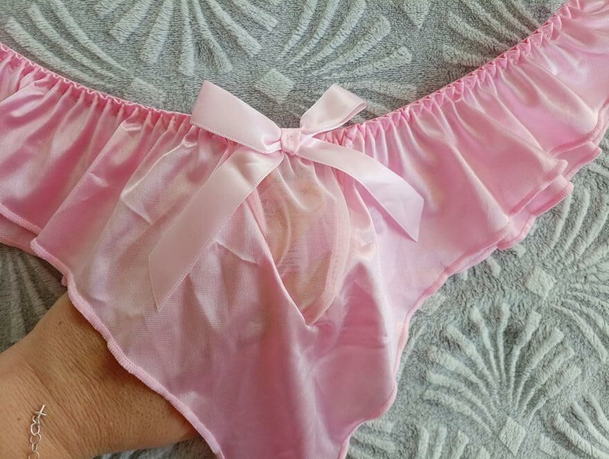 Urocze różowe majtki satynowe z falbanką o fasonie stringów w rozmiarze XL. Nowe. Wysyłka listem poleconym 10 zł.Katarzyna