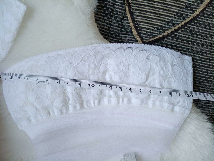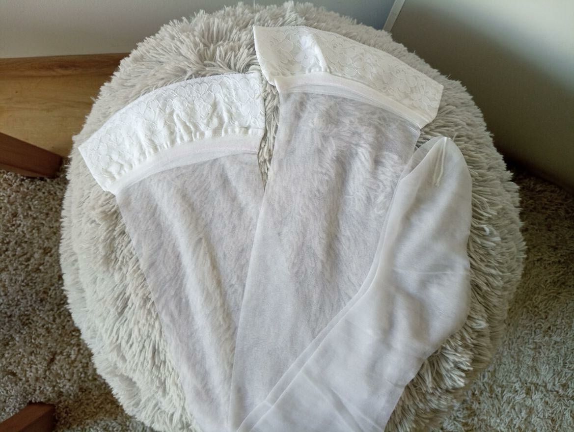 Białe pończochy samonośne wykonane z nylonu zdobione koronkowa manszeta. Nowe. Rozmiar 10 1/2-11. Wysyłka listem poleconym 10 złKatarzyna