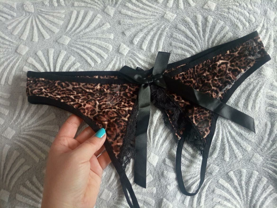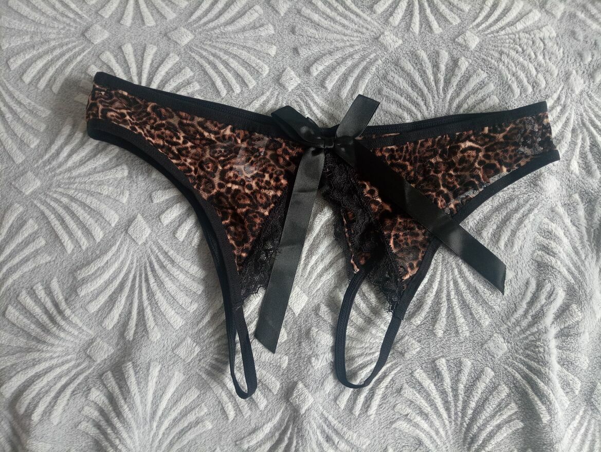 Fantazyjne majtki otwarte z motywem panterki. Nowe. Rozmiar L. Wysyłka listem poleconym 10 zł.Katarzyna
