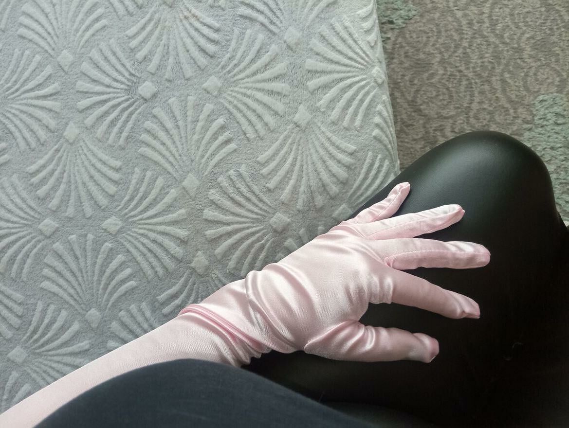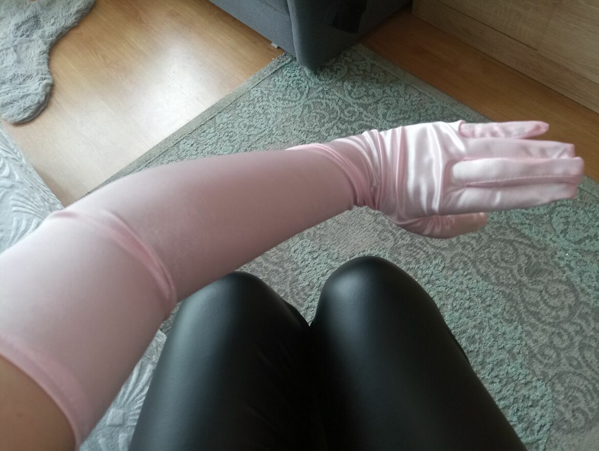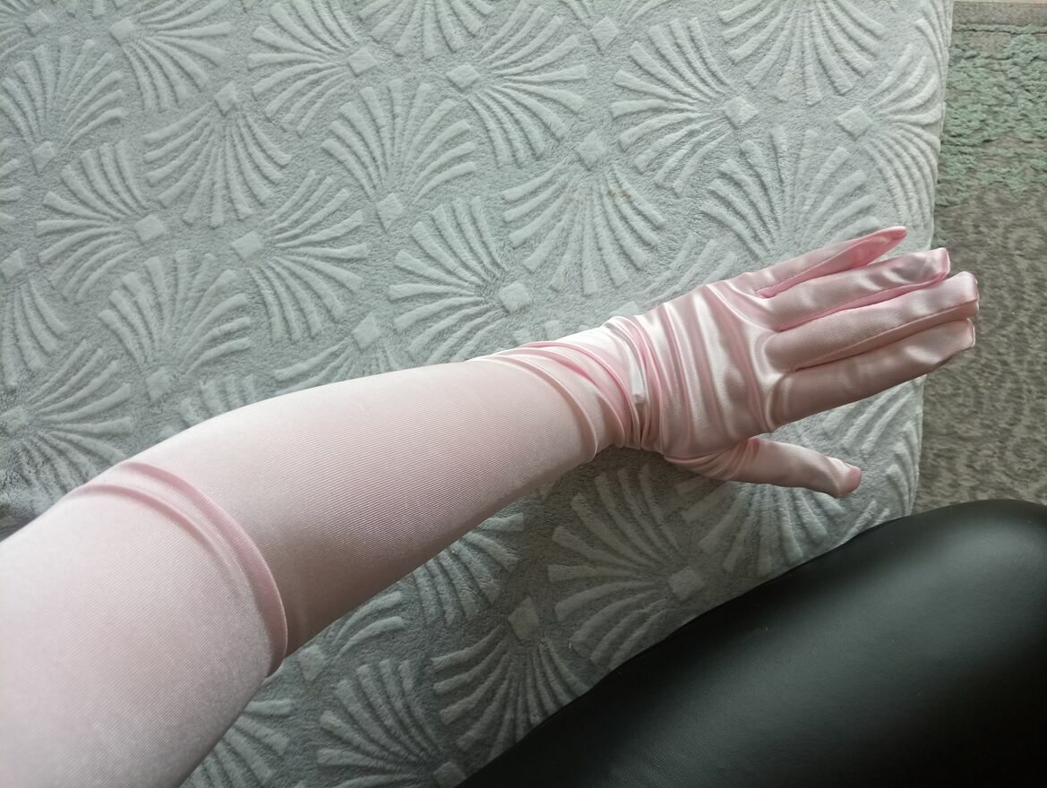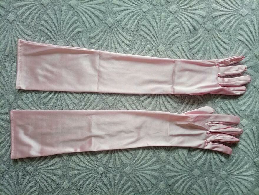 Bardzo długie, jasnoróżowe rękawiczki satynowe dla prawdziwych orędowniczek elegancji. Nowe. Rozmiar uniwersalny. Wysyłka listem poleconym 10 zł.Katarzyna