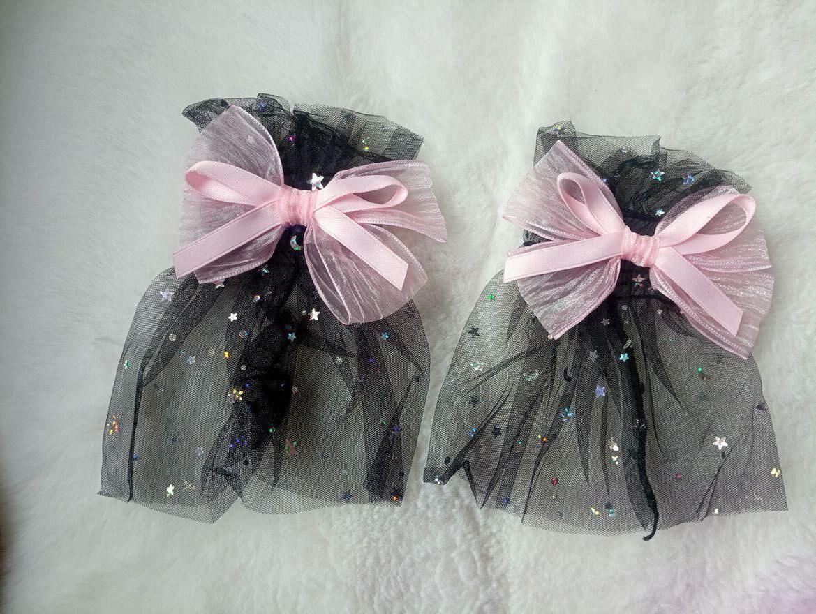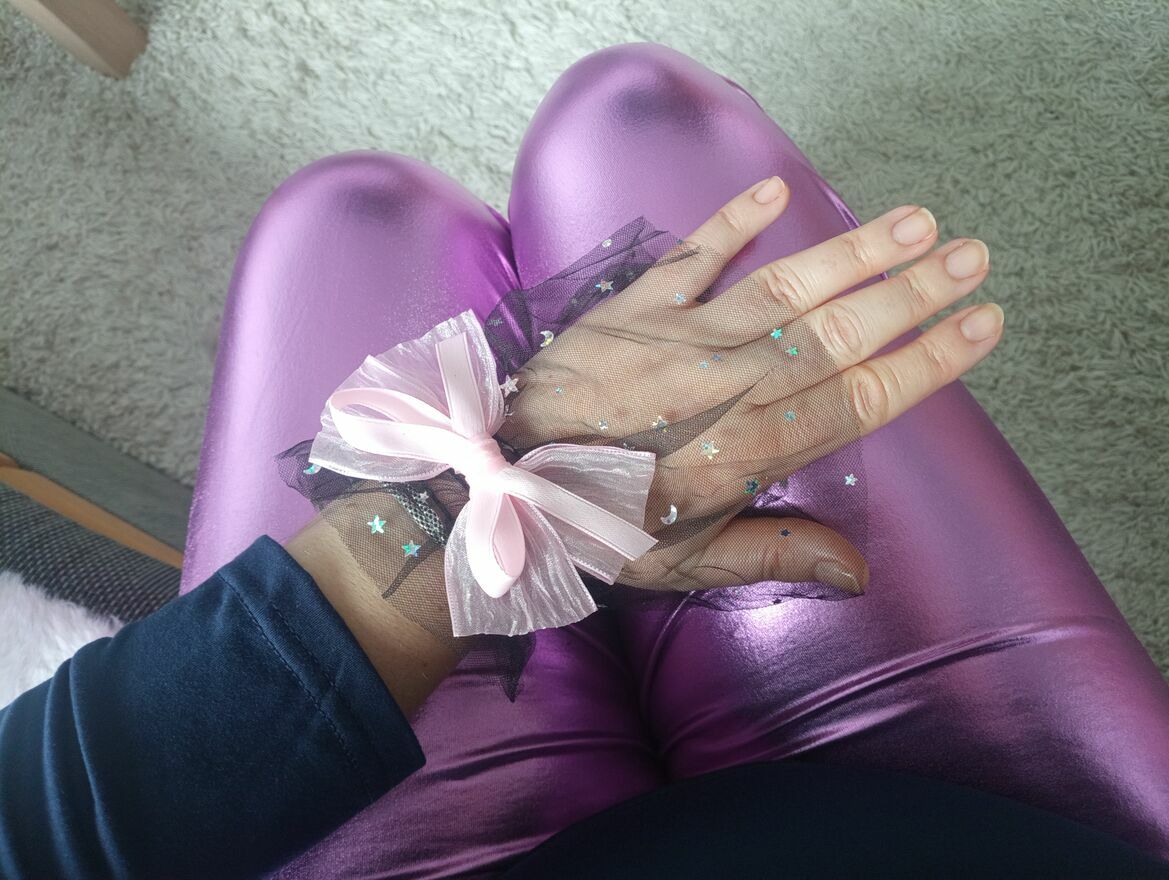 Przeslodkie tiulowe rękawiczki bez palców zdobione tęczowymi błyskotkami i dużą różowa kokarda. Nowe. Wysyłka paczką pocztową 16 zł.Katarzyna