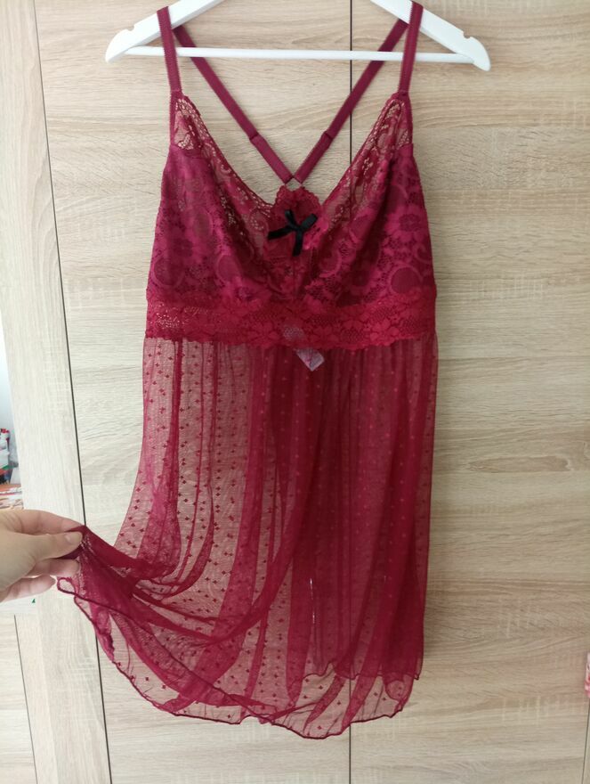 Przeurocza, prześwitująca koszulka nocna w eleganckim burgundowym odcieniu. Stan idealny. Rozmiar XL. Wysyłka paczką pocztową 16 złKatarzyna