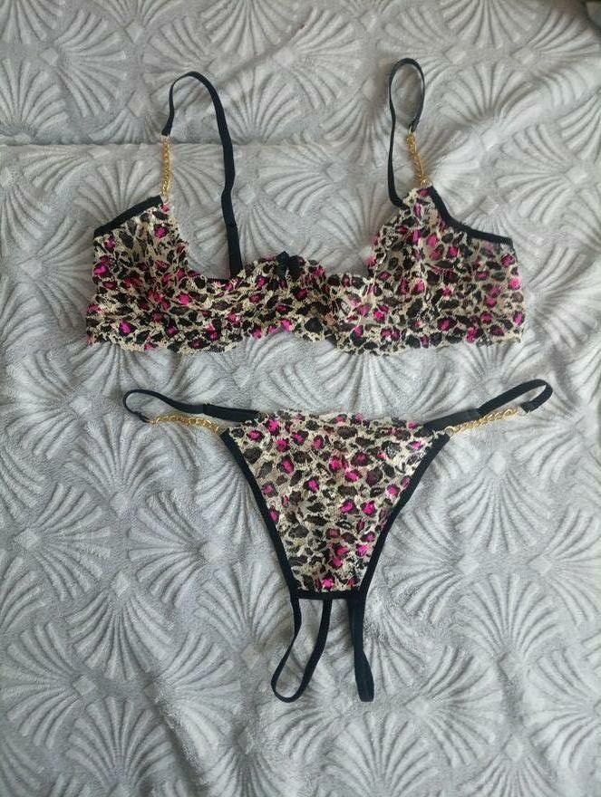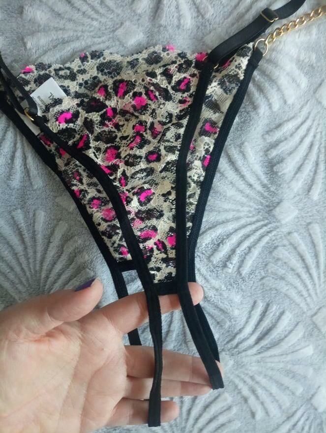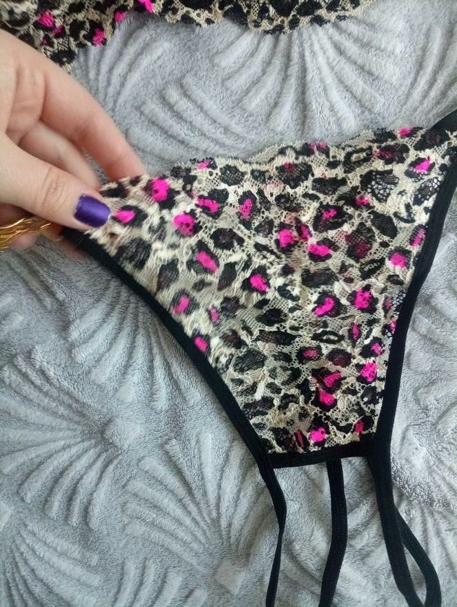 Super seksowny komplet otwarty dla odważnych kobiet. Zmysłowy panterkowy print i fason rozbudzający wyobraźnię. Nowe. Rozmiar XL. Wysyłka paczką pocztową 16 zł.Katarzyna