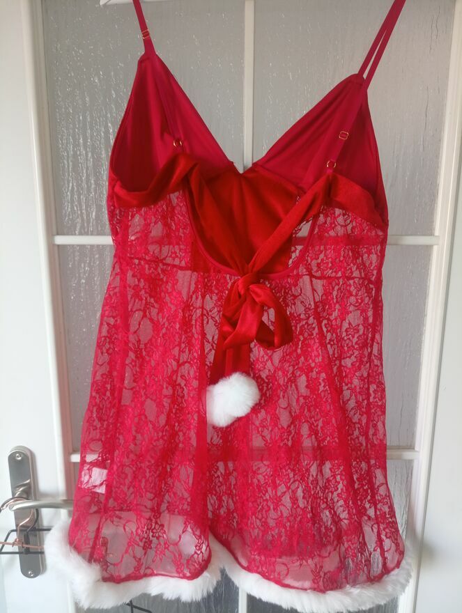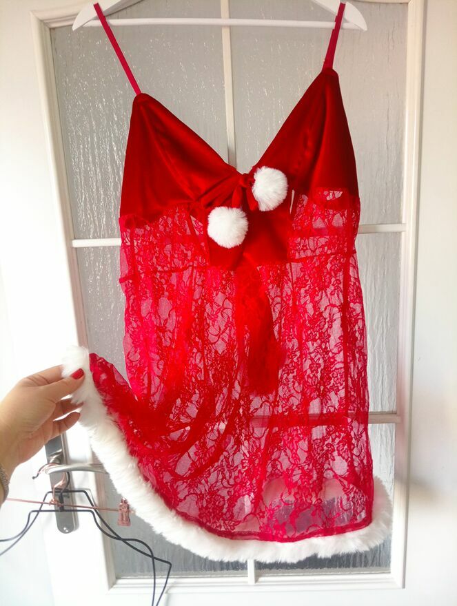 Piękna, odświętną koszulka nocna w interesującym burgundowym odcieniu uszyta z połączenia aksamitu i koronki, zdobiona białym puszkiem. Poczuj się jak prawdziwa śniezynka. Nowe. Rozmiar XL. Wysyłka paczką pocztową 16 zł.Katarzyna